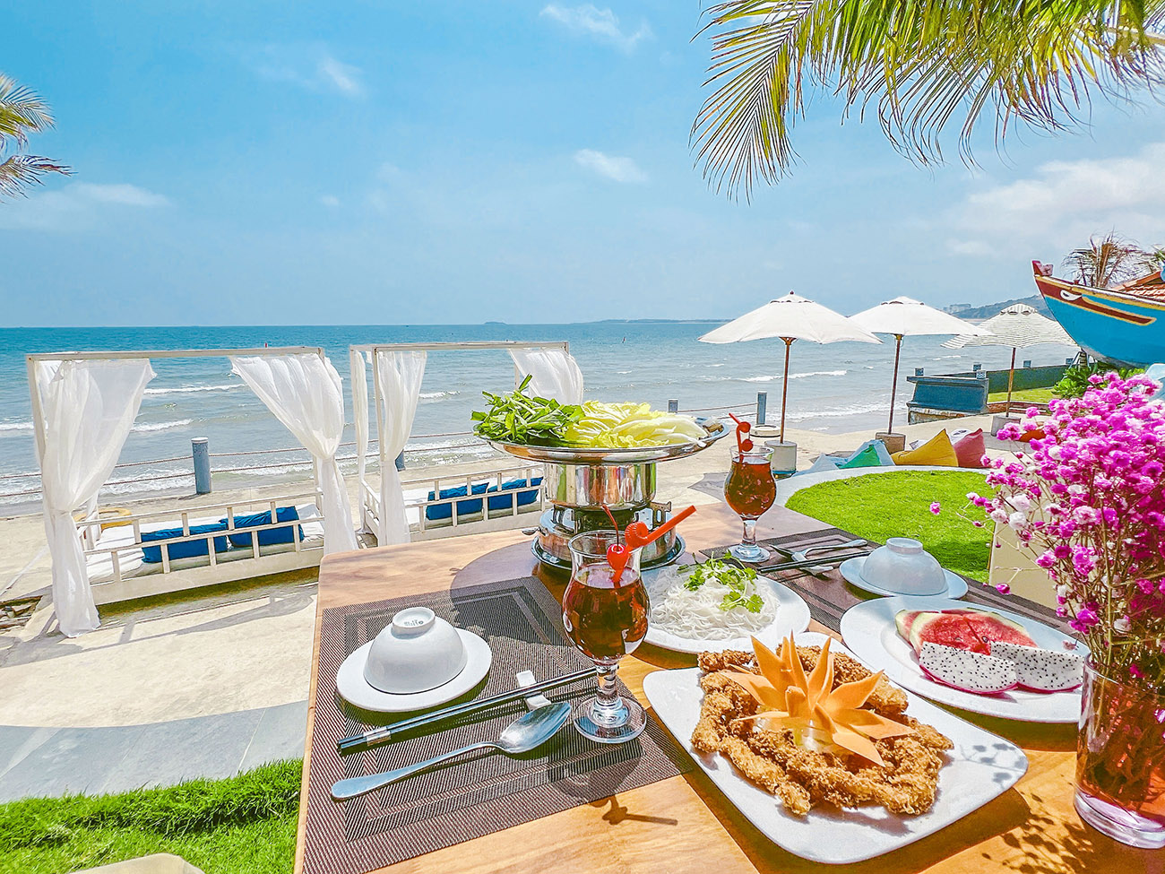 Bố trí nội thất sao cho mọi góc nhìn đều hướng về vẻ đẹp của Hòn Rơm Mũi Né, tạo cảm giác thư giãn tuyệt đối.