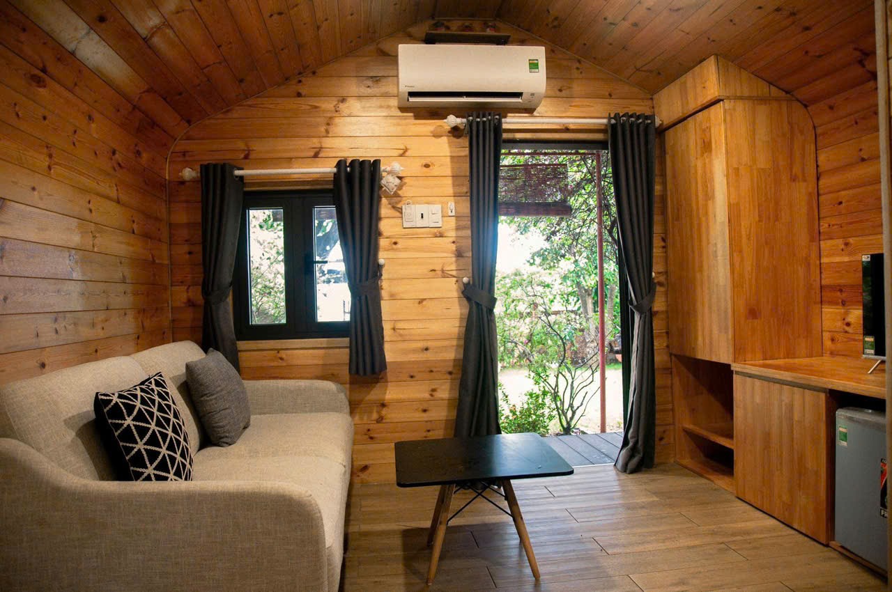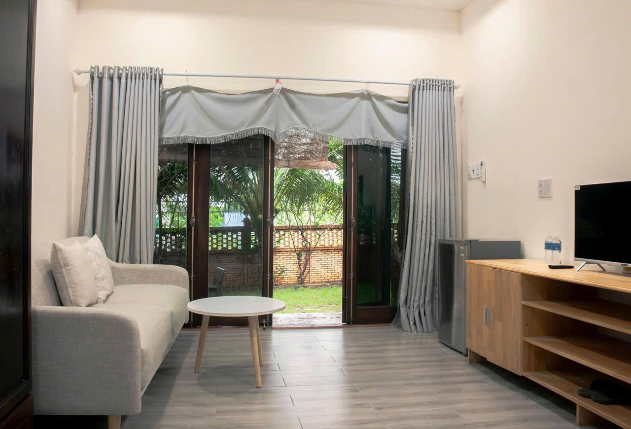 - Sân vườn/Ban công: Đặt thêm bộ bàn ghế gỗ nhỏ để du khách có thể ngắm hoàng hôn hoặc thưởng trà buổi sáng.