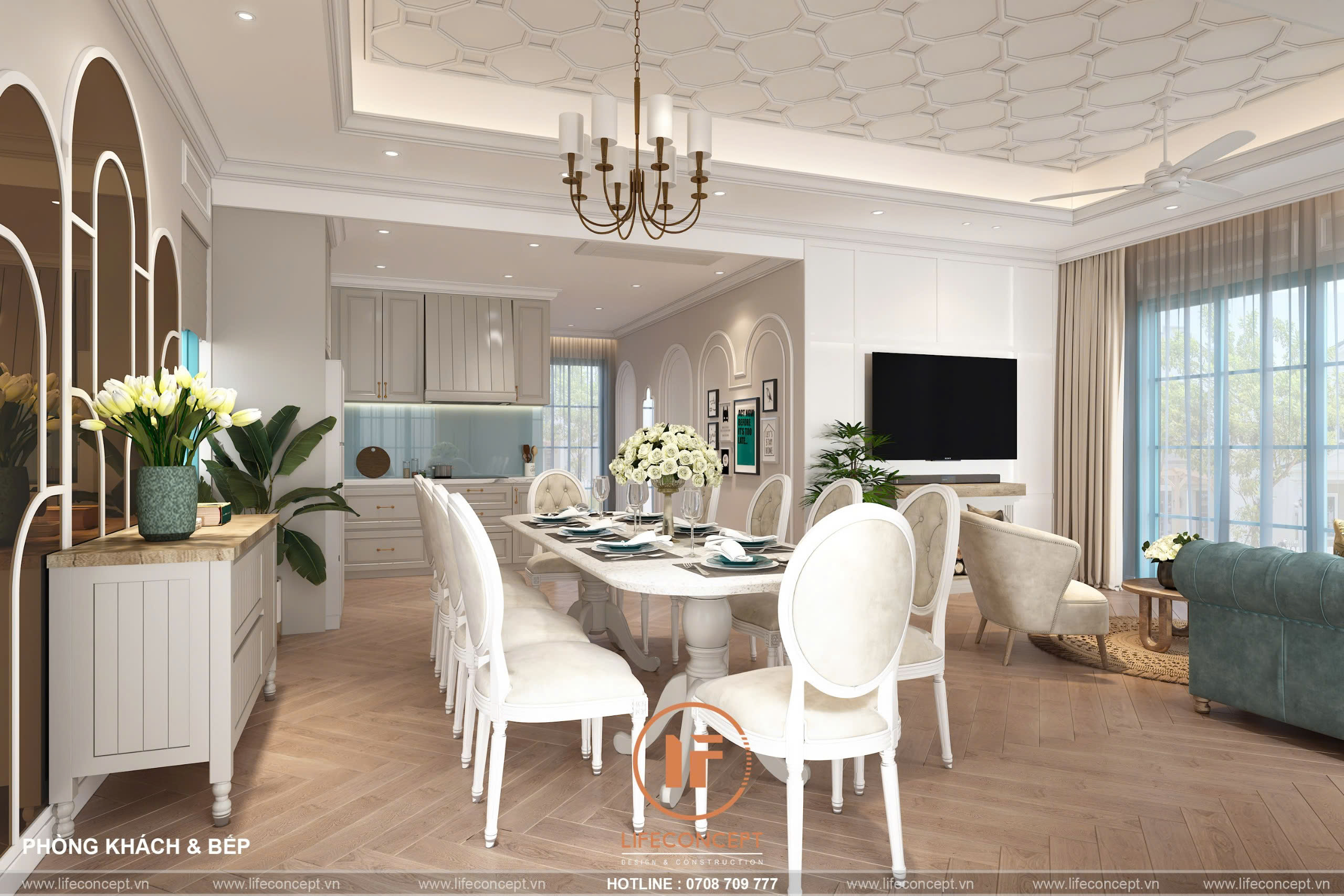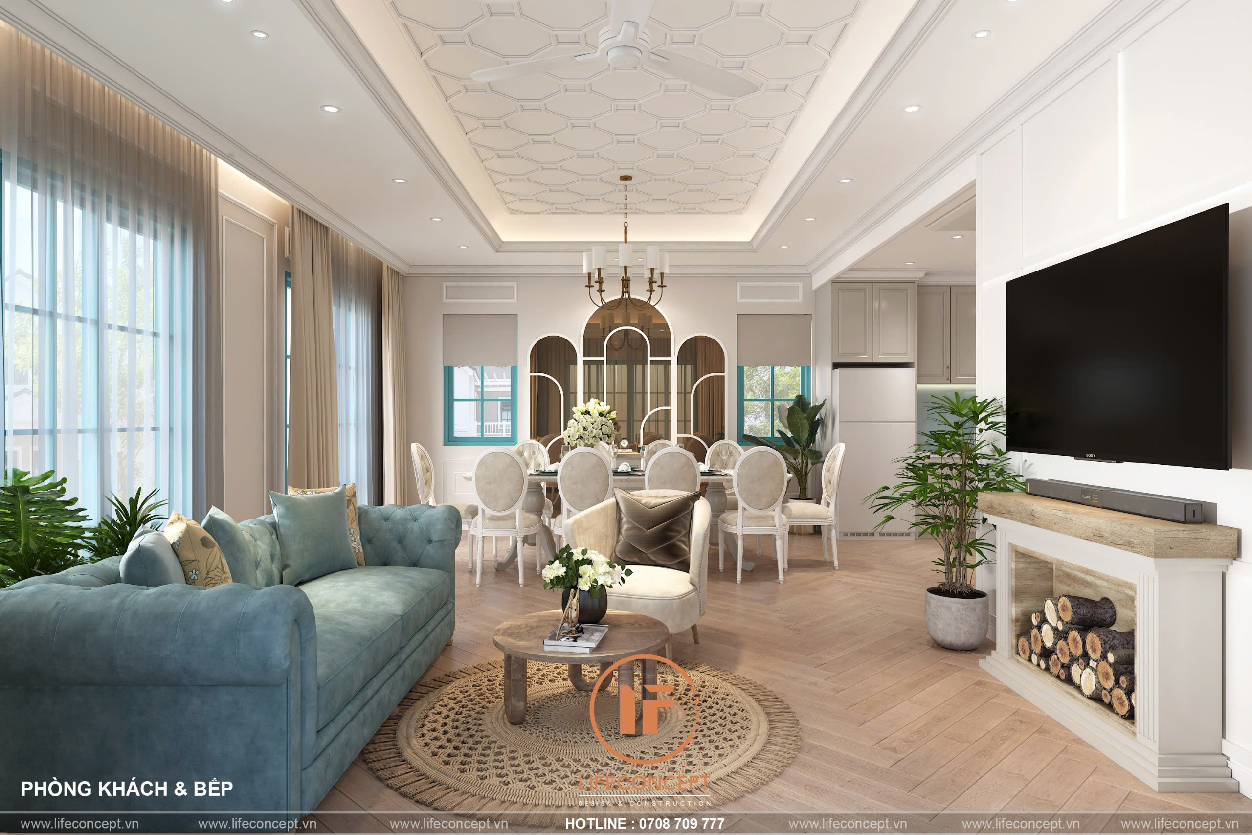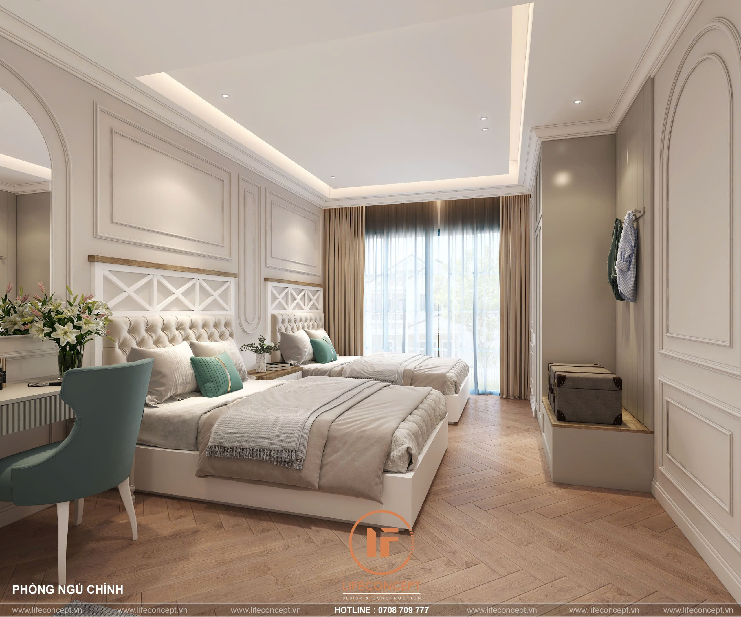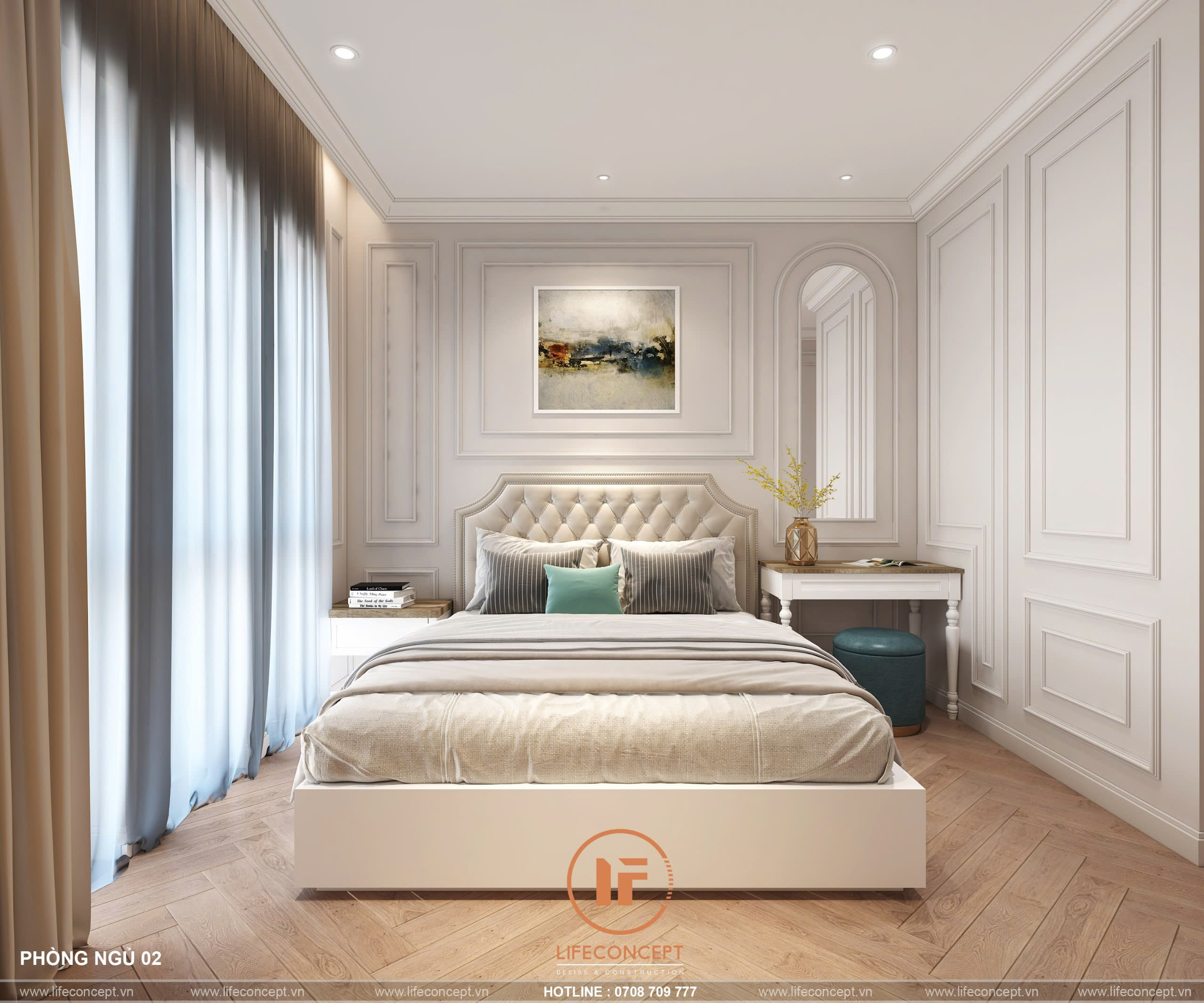 • Không Gian Cân Đối: Tập trung vào sự cân đối, hài hòa trong bố cục và tỷ lệ vàng, mang lại vẻ đẹp cổ điển nhưng không kém phần hiện đại.