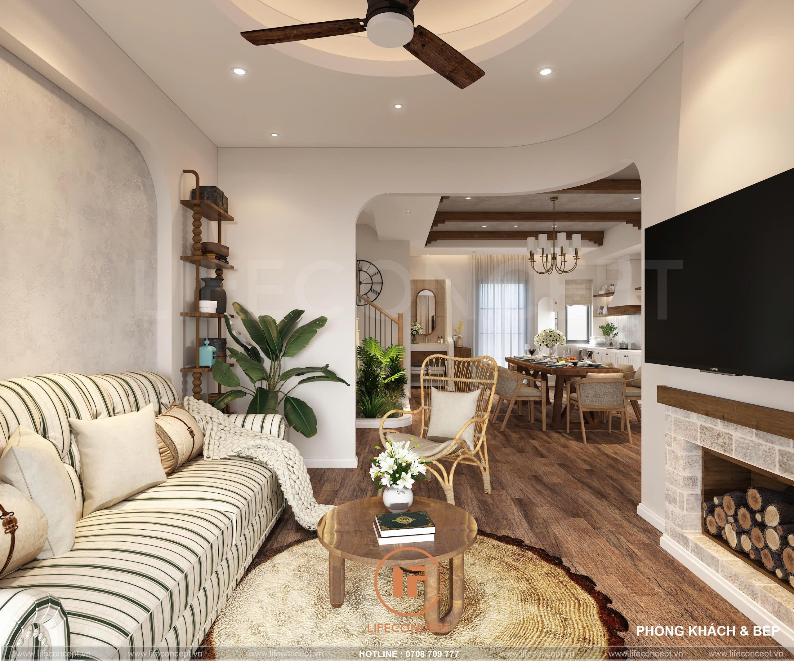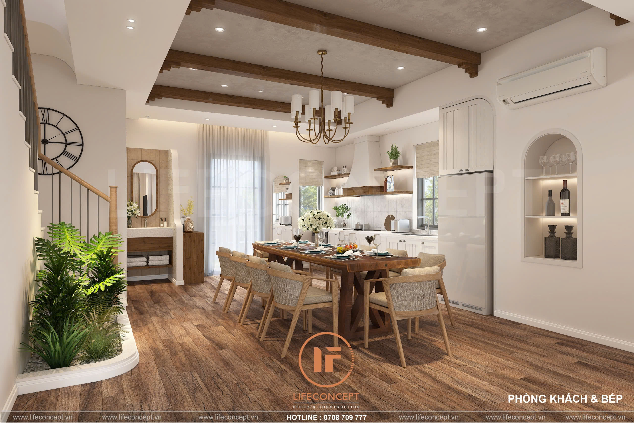 > Ý tưởng thiết kế: Sử dụng phong cách Địa Trung Hải – Mộc cộng hưởng với sự quý phái của màu sắc, tạo nên 1 ngôn ngữ nội thất rất riêng trong ngôi nhà