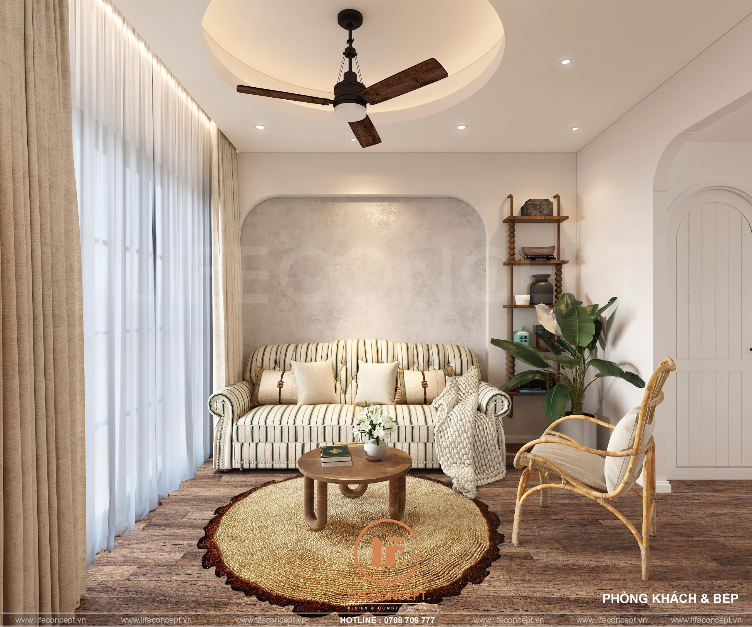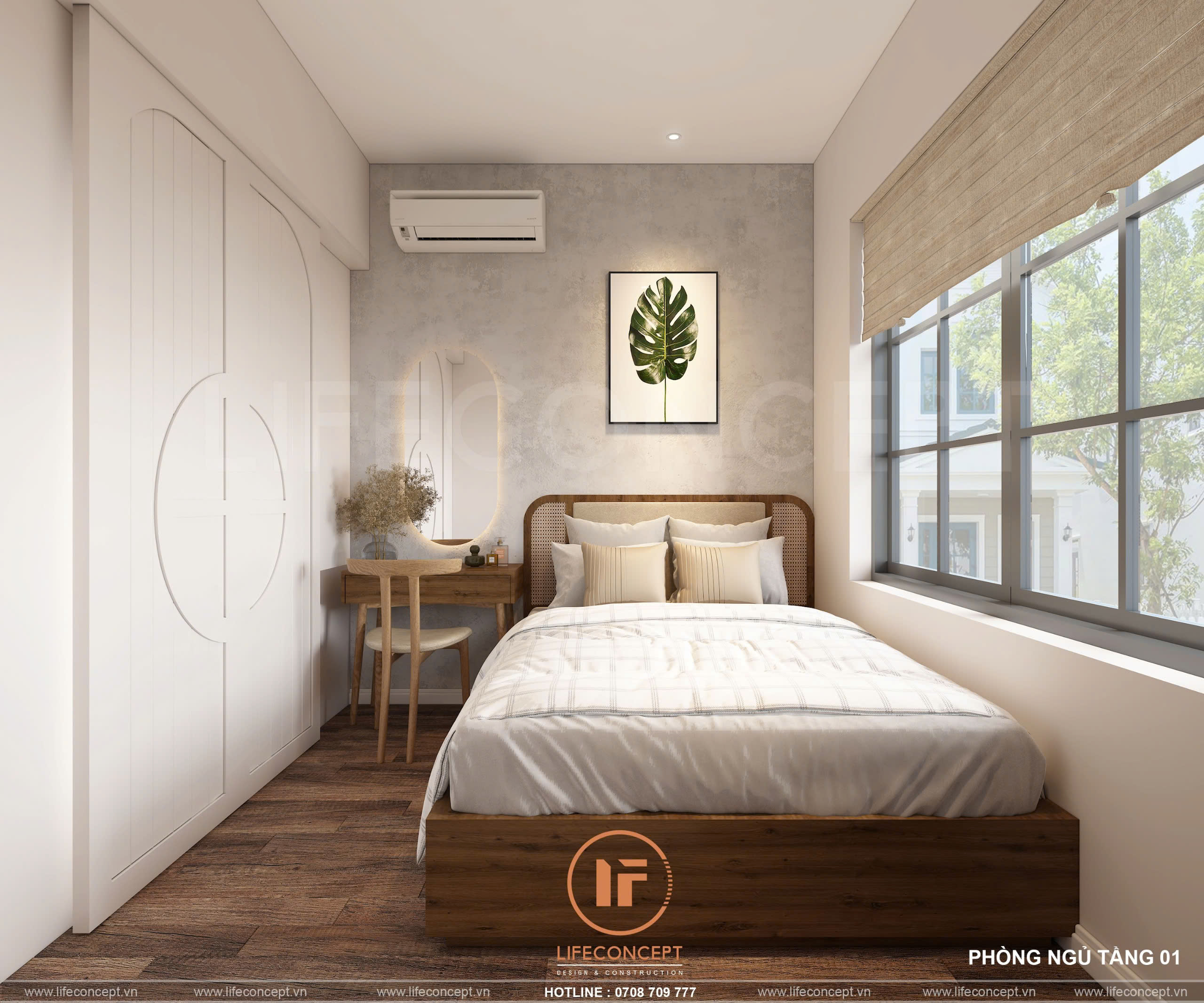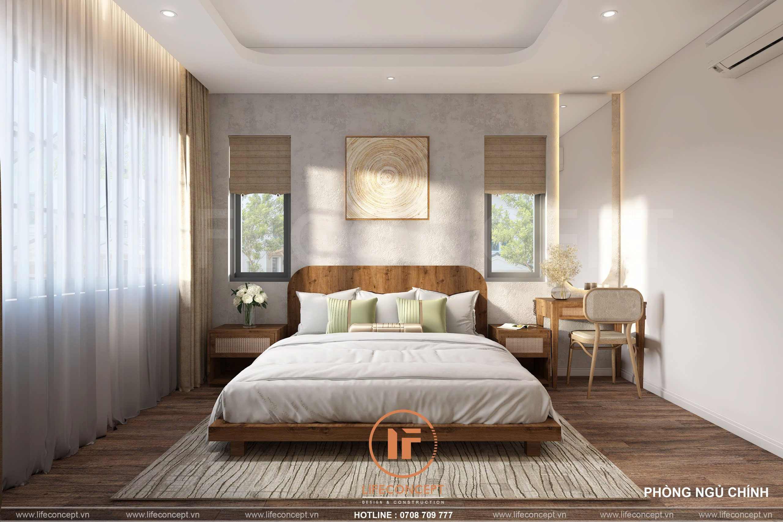 - Màu sắc:Chủ đạo là trắng và nâu gỗ, tạo cảm giác ấm áp và dễ chịu.