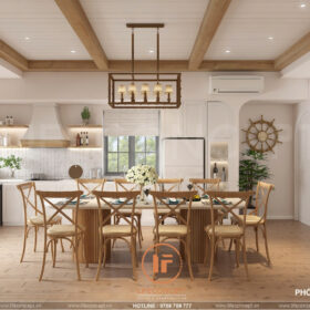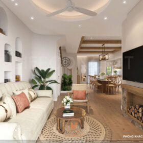 > Ý tưởng thiết kế: Sử dụng phong cách Địa Trung Hải – Mộc cộng hưởng với sự quý phái của màu sắc, tạo nên 1 ngôn ngữ nội thất rất riêng trong ngôi nhà