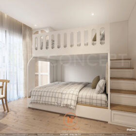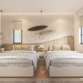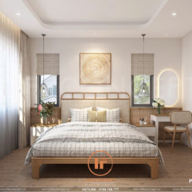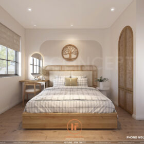 - Màu sắc:Chủ đạo là trắng và nâu gỗ, tạo cảm giác ấm áp và dễ chịu.