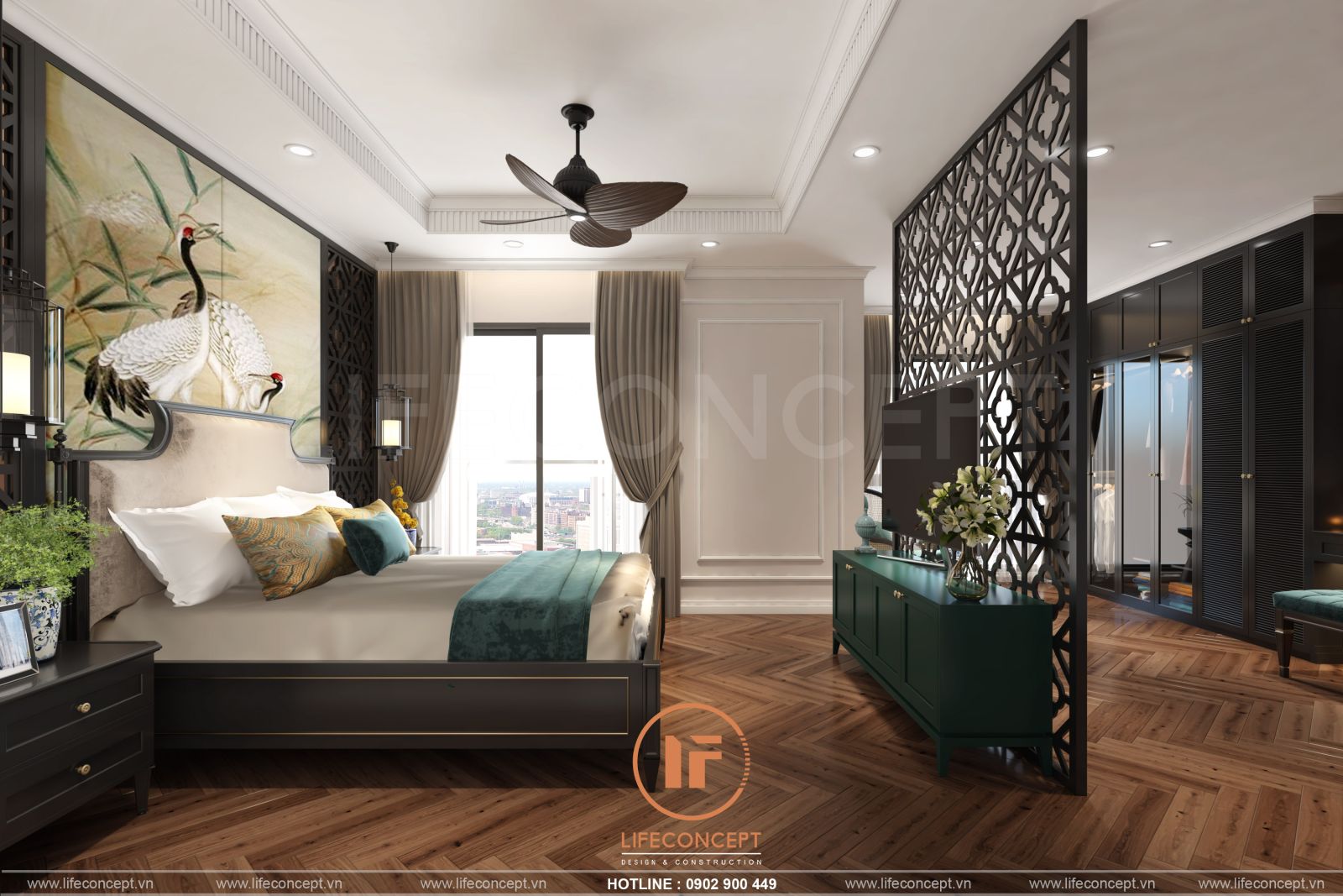 - Phòng ngủ Master: Thiết kế theo tiêu chuẩn Suite khách sạn với khu vực thay đồ (Walk-in closet) riêng biệt.